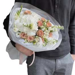 Price: $160.00 Delicate bouquet with the addition of blue hydrangeas and a delicately scented Product Tags: Next-day Delivery