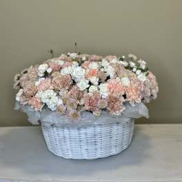 Price: $120.00 beautiful basket with dianthus, hydrangea and spray roses Product Tags: Next-day Delivery