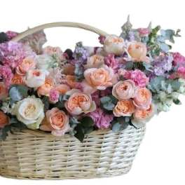 Price: $176.00 Stylish basket with flowers, in green and fresh shades, for a fashionable girl. Product Tags: Same-day Delivery