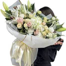 Price: $170.00 white composition with orchids, hydrangeas, dianthus, spray roses Product Tags: Next-day Delivery